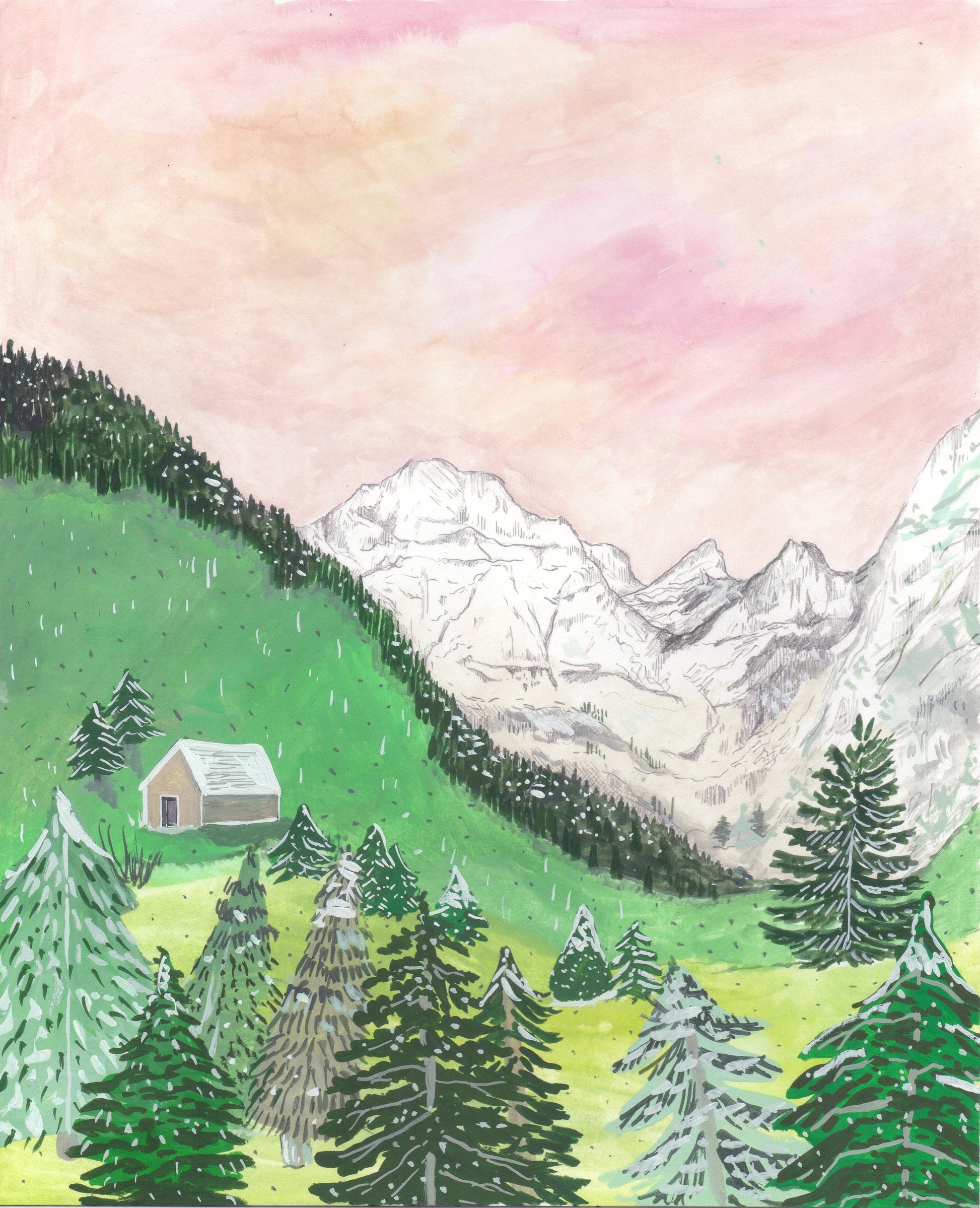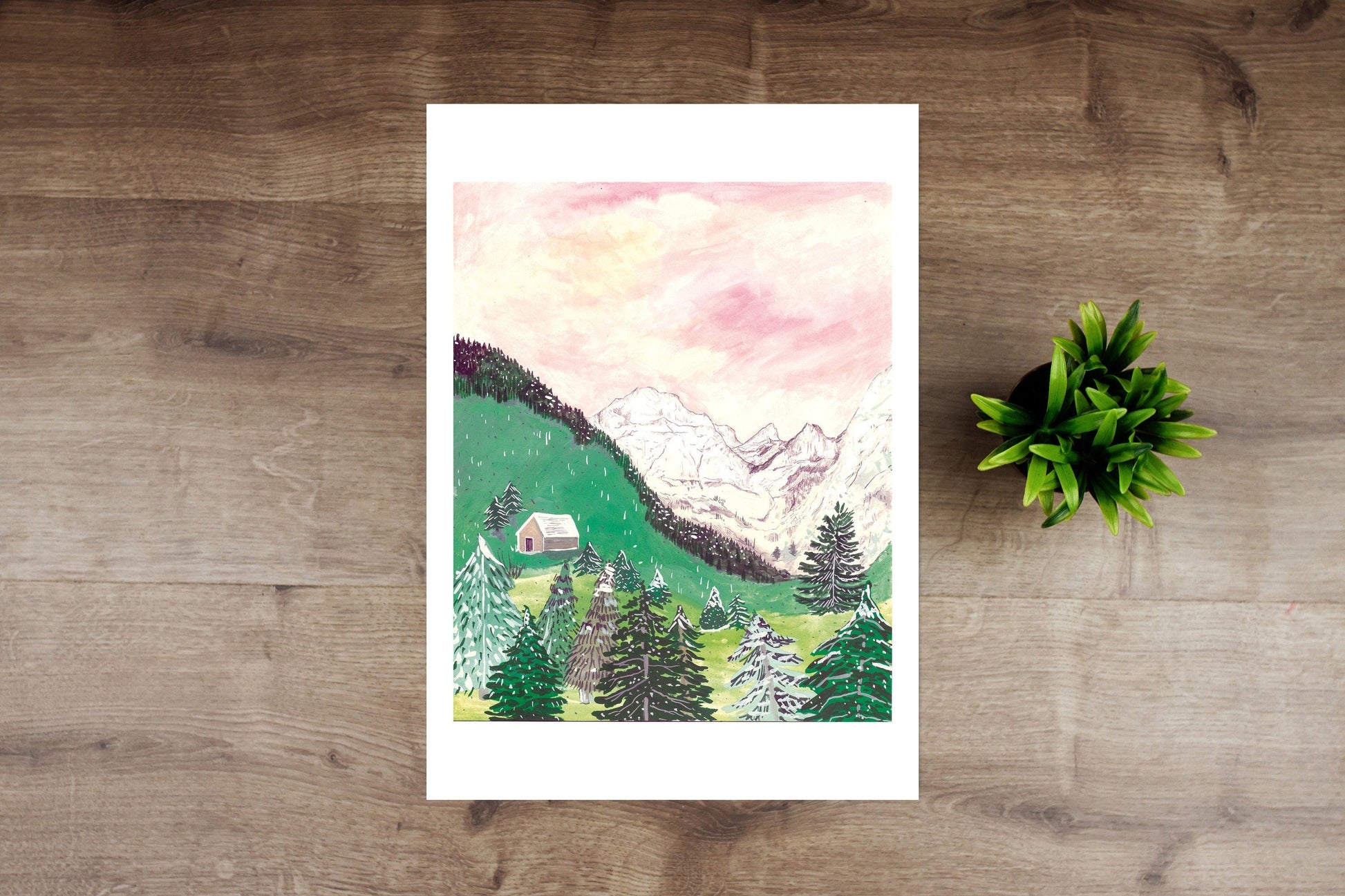 Giclee art print of my Austrian mountain scene, originally created in gouache.