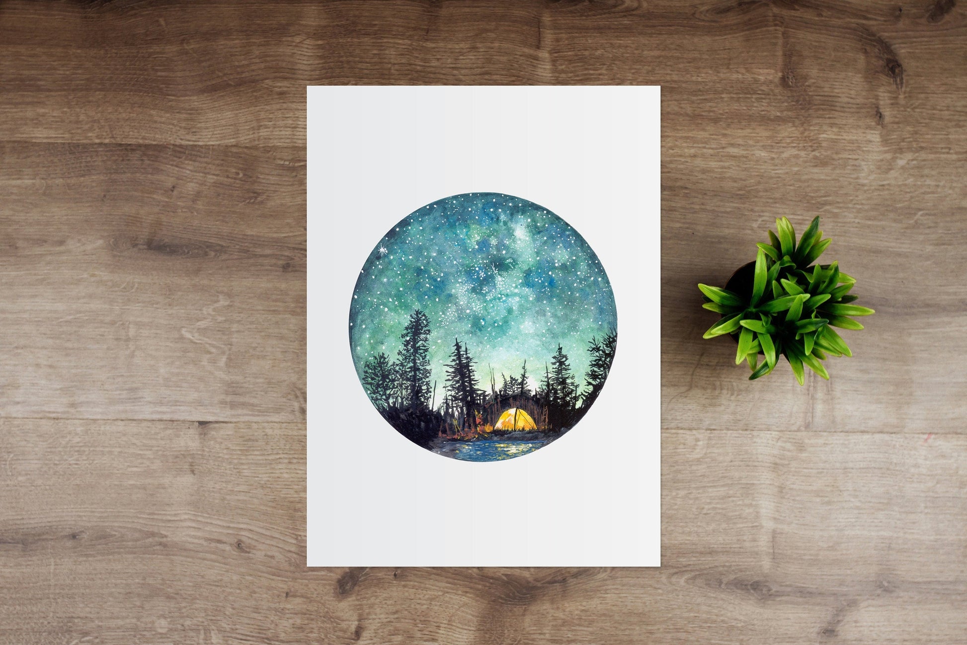 Giclee art print of my popular camping scene, originally created in gouache with a tiny brush!
