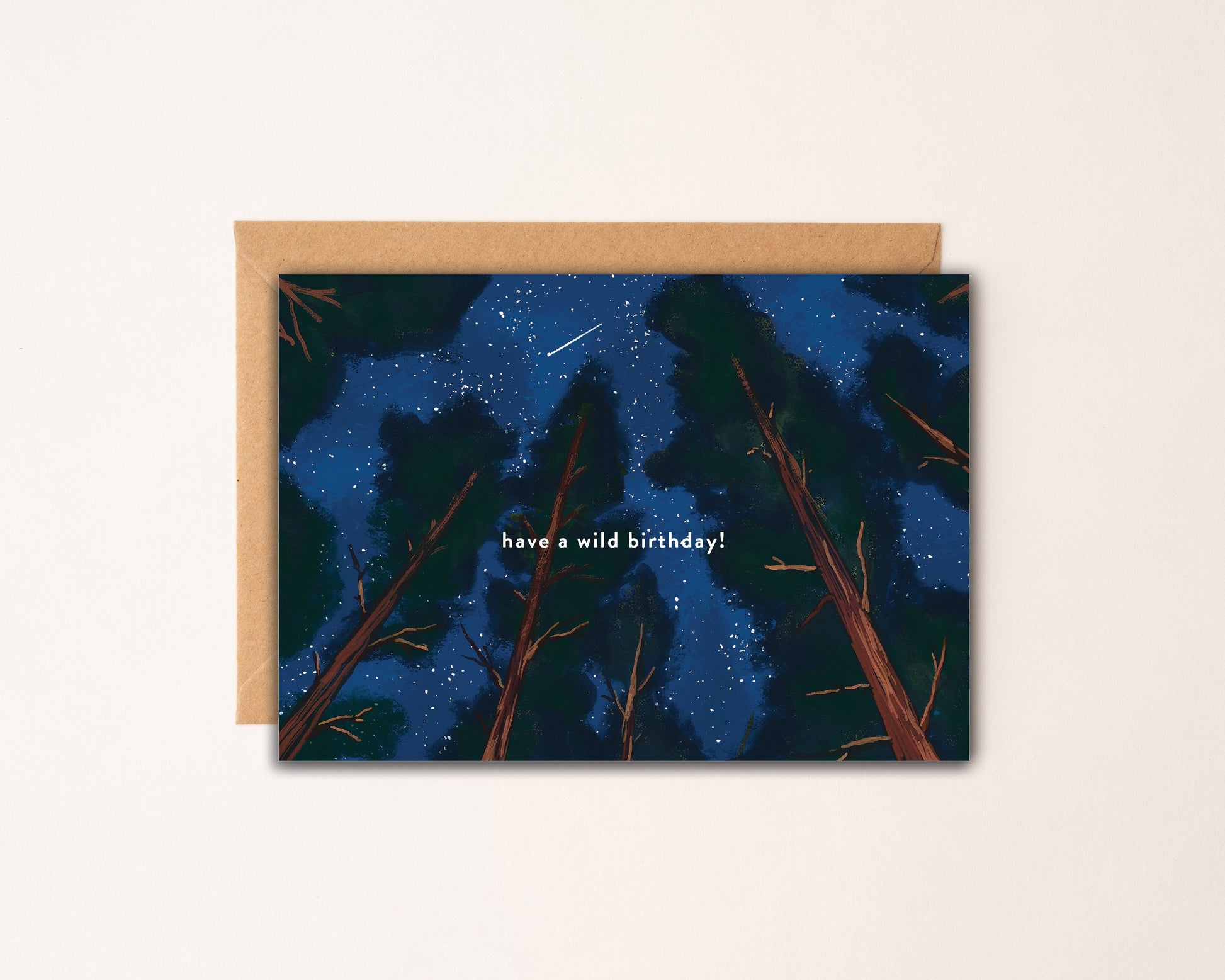 A brand new birthday card printed from an original illustration, on thick uncoated card stock