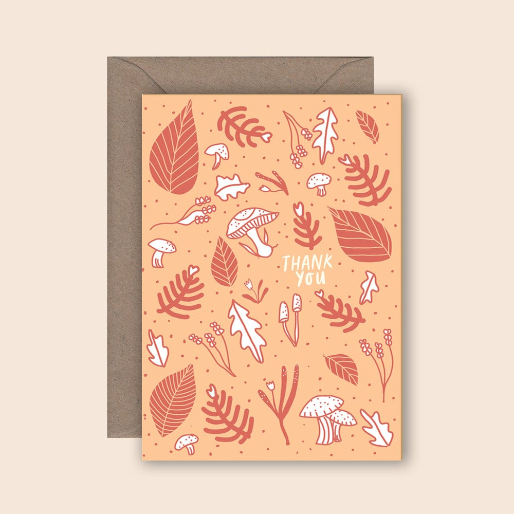 A woodland themed, illustrated thank you card printed on recycled card stock.